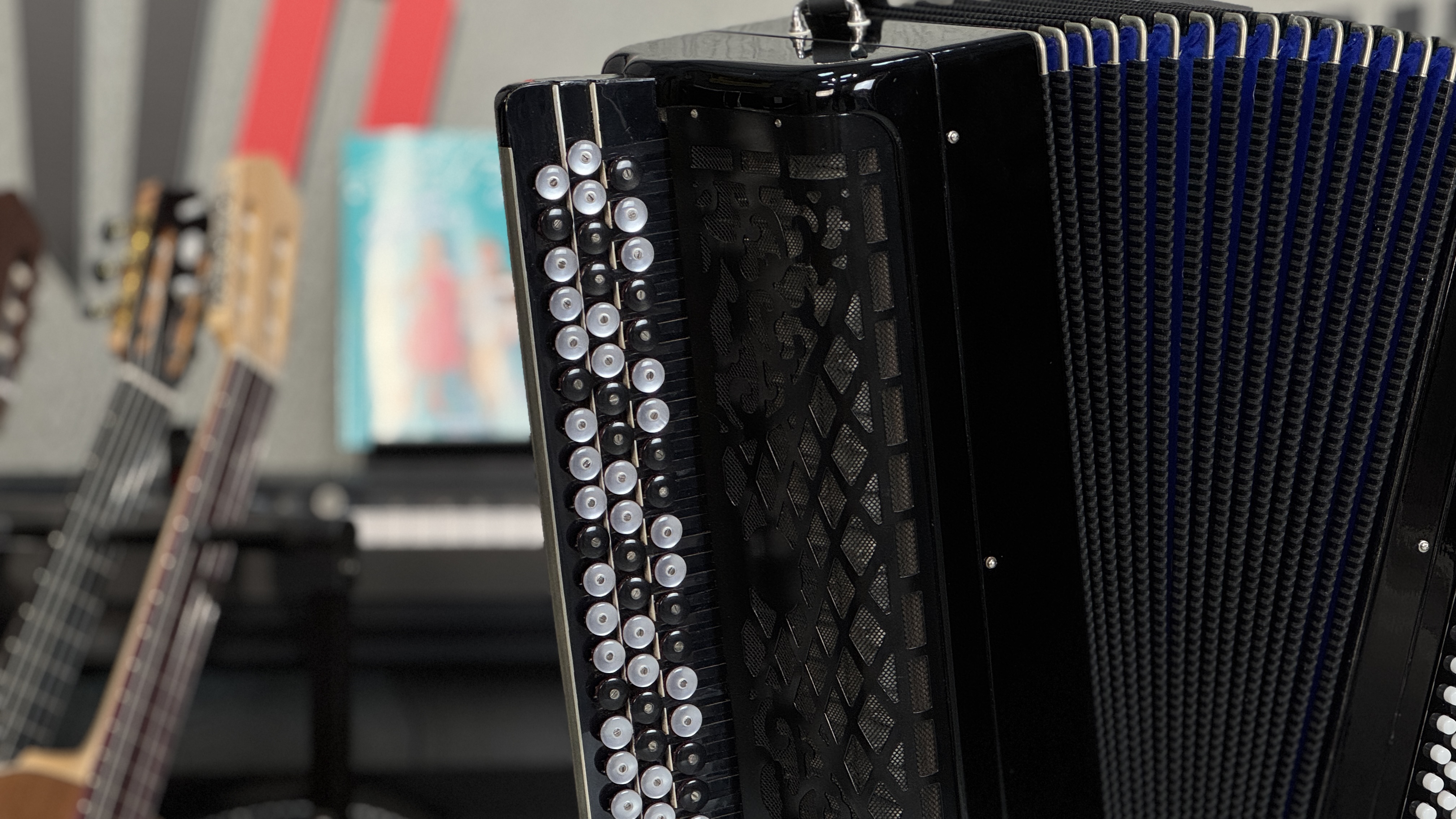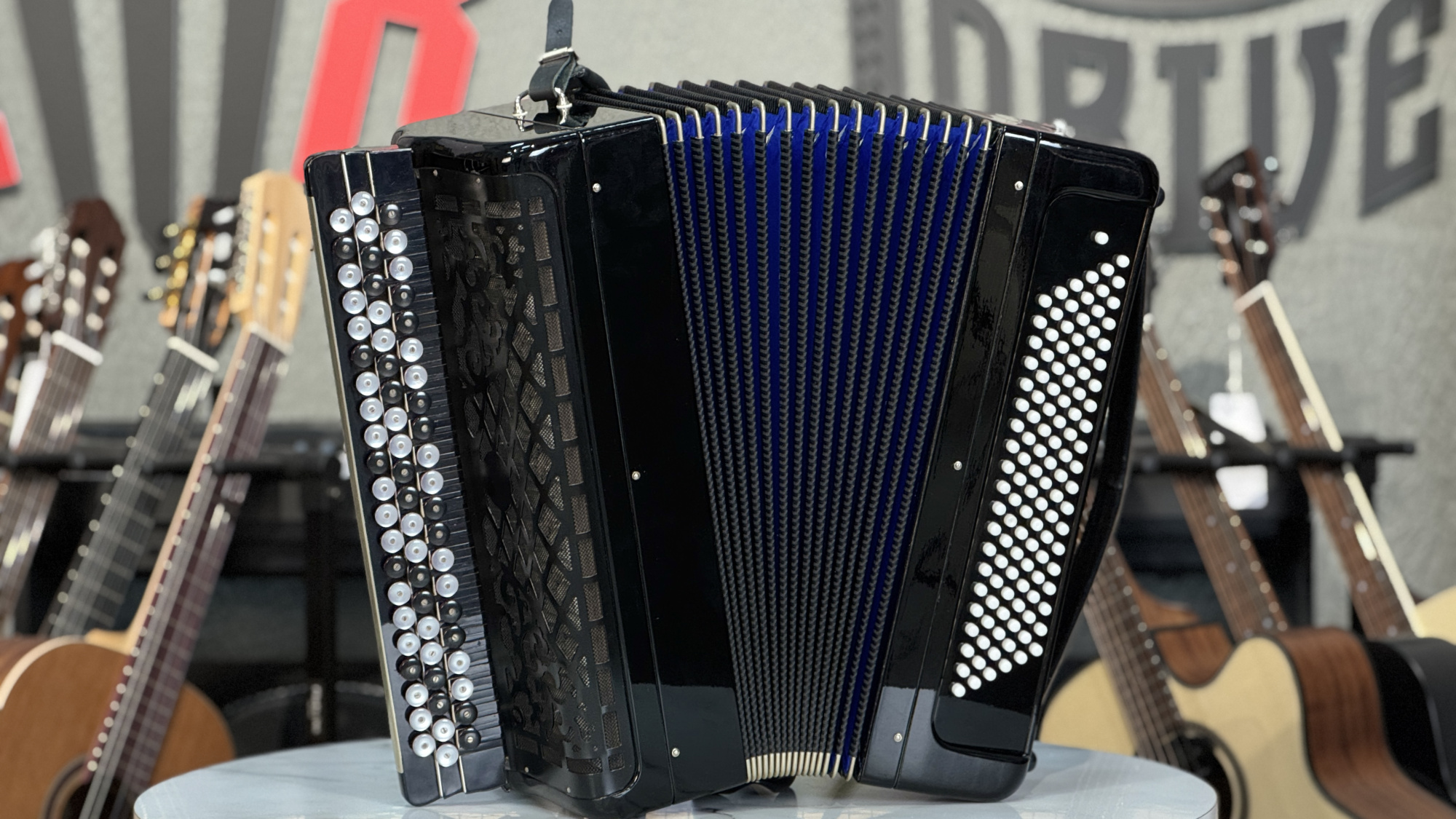 регулировка левого ремня металлическим колесиком, мельхиоровые уголки, белые левые кнопки, перламутровые черно-белые правые кнопки |